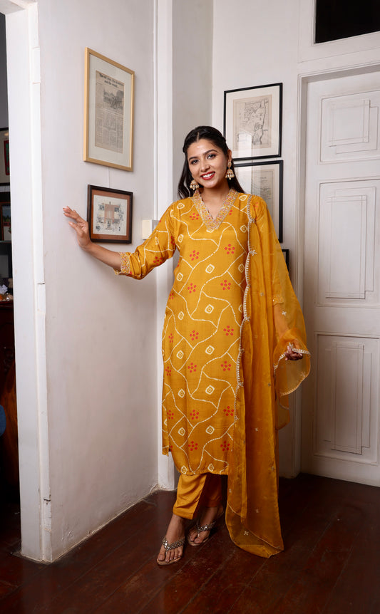 Mustard Bandhani Ethnic Suit