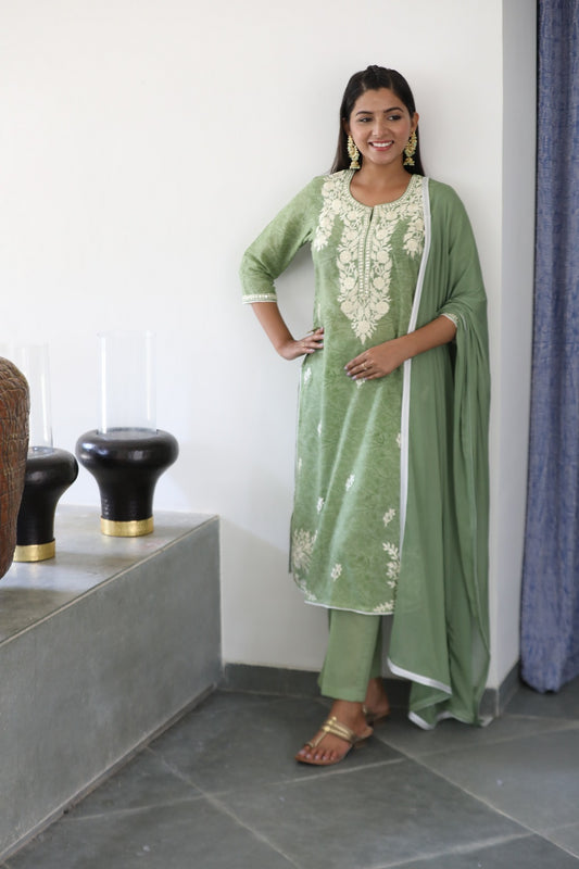 Printed Floral Dhaboo Yoke Ethnic Suit