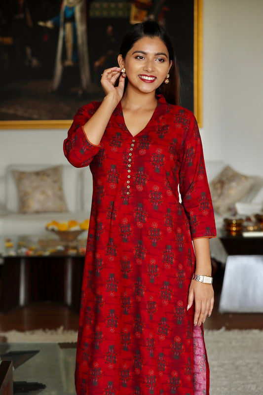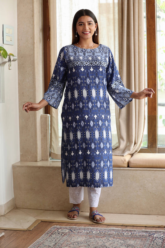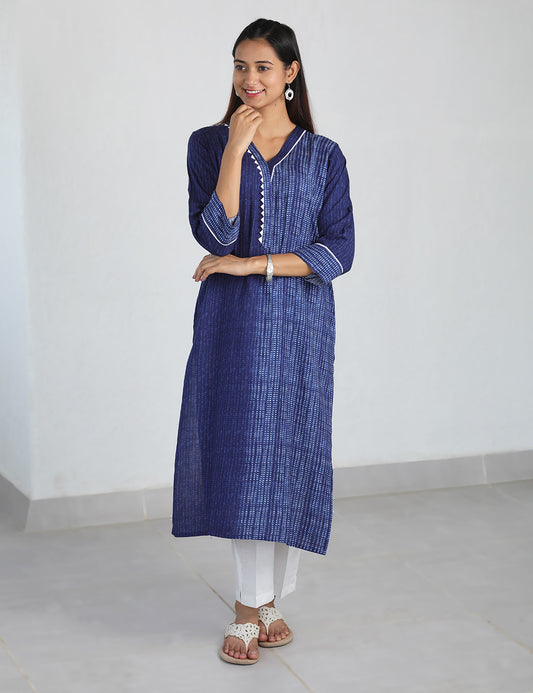 Peacock Blue Ambi Jari Yoke Long Kurta