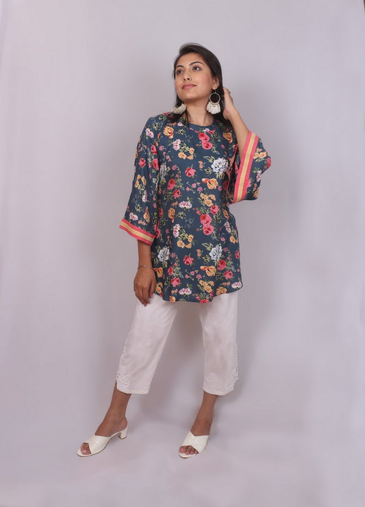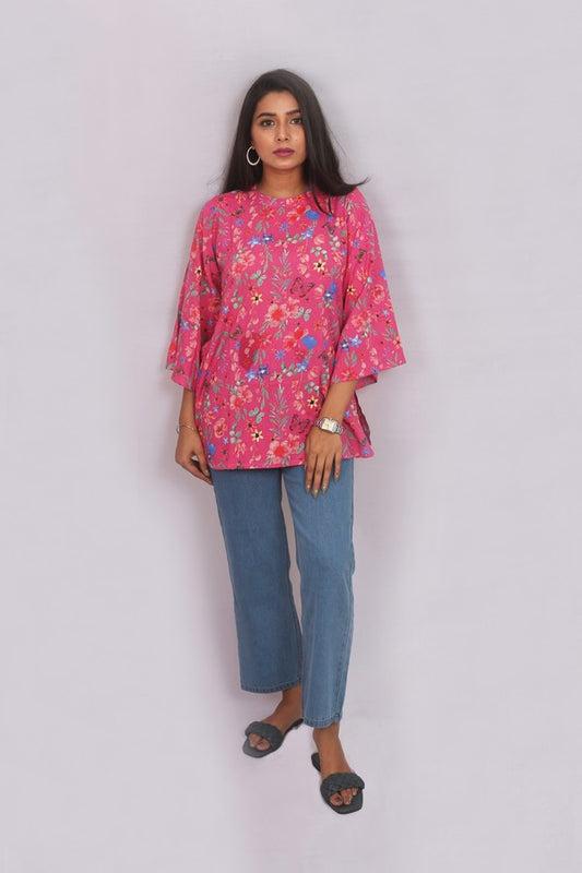 Floral Printed Bell Sleeved Short Kurti