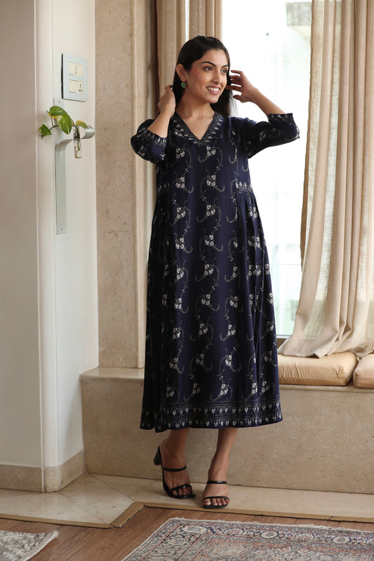 Navy Blue Rayon Dress