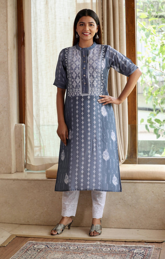 Grey Rayon Bandhani Kurta