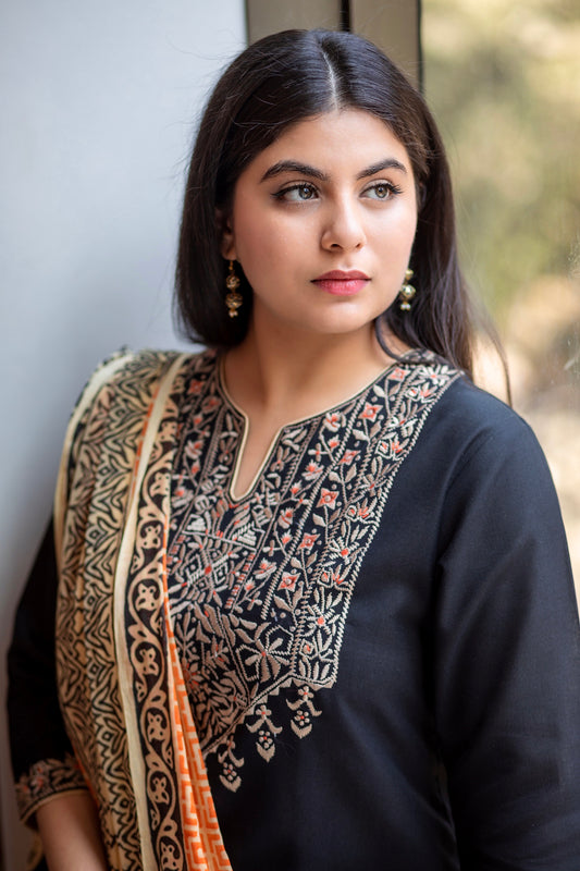 Printed Floral Dhaboo Yoke Ethnic Suit