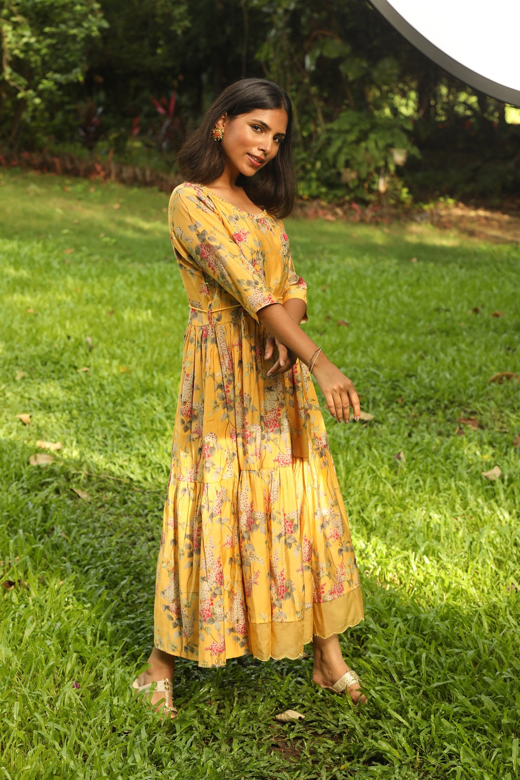 This easy-breezy muslin dress with lining and floral print will exude the feeling of summer even on the dullest days. Brighten your evening with this dress and pair it with simple accessories!
